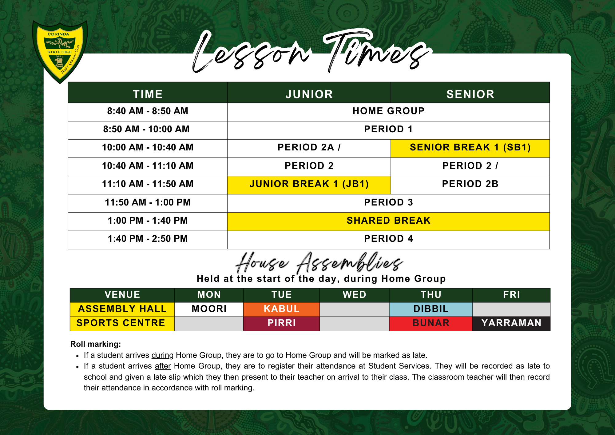 Please note, the school is closed during holiday periods and student-free days unless otherwise stated.
